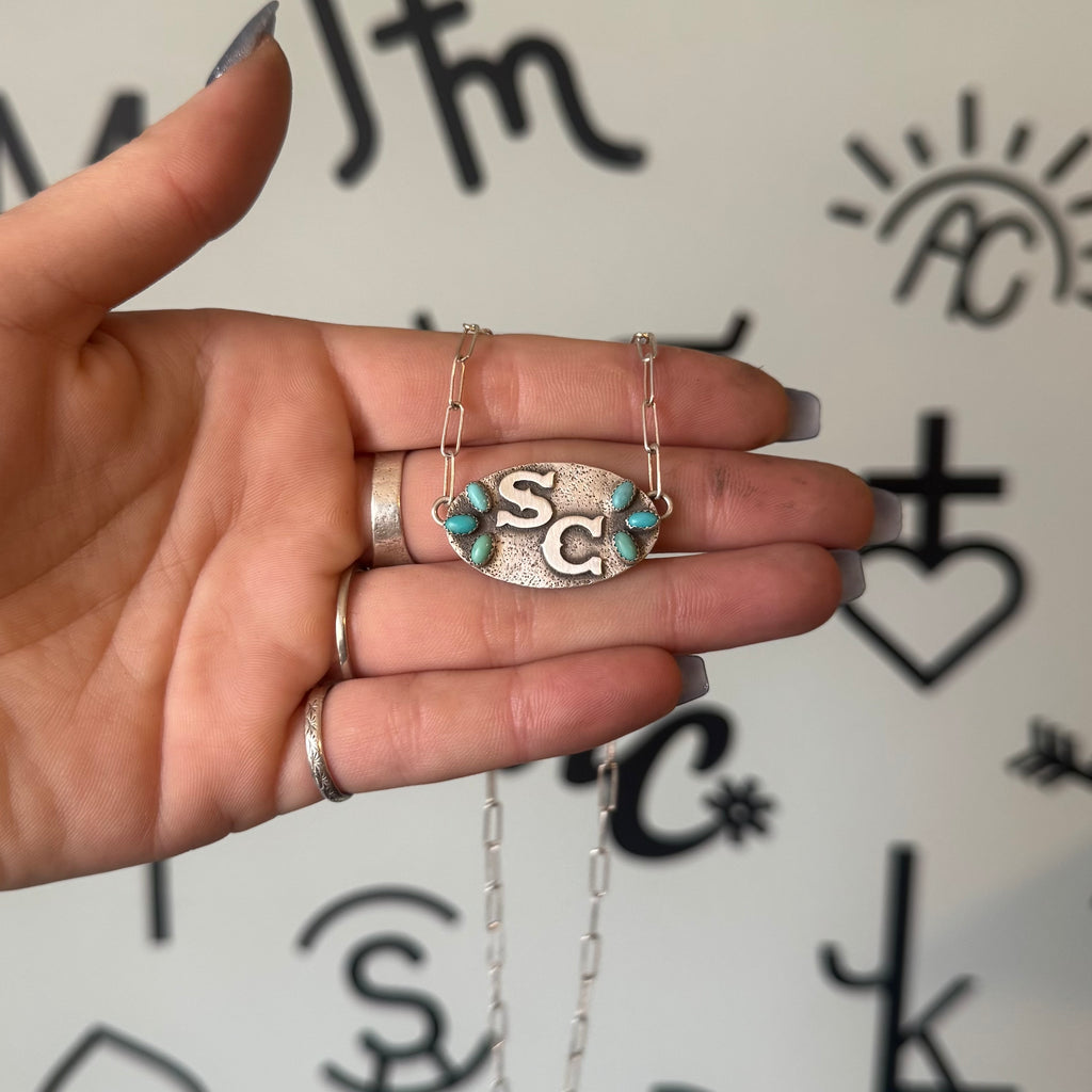 Initials SC Turquoise Oval Necklace